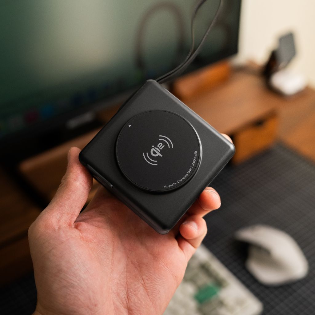 Power your phone anywhere in the world with one compact device. Magnetic charging, built-in cables, and global plug support — all in your pocket.